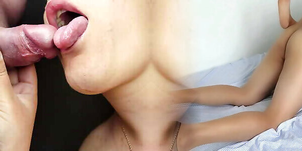 Close-up of blowjob from wife. Oral creampie extreme close up