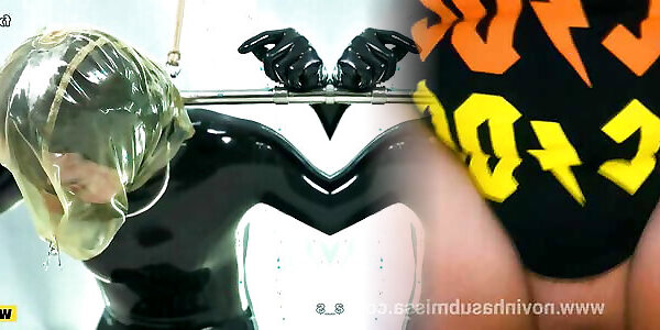 Fejira com Latex clothing wrapped tightly around the body to restrict movement
