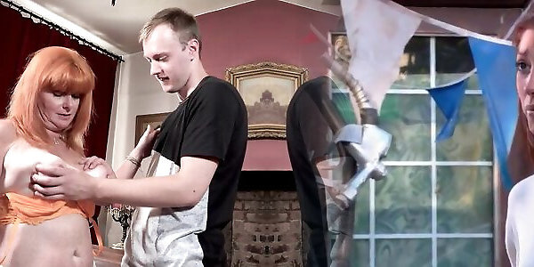 Mature ginger step-mom fellates and tears up young man