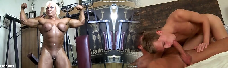 Chick Bodybuilder Poses Her Big Clit In The Gym