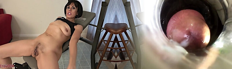Trendy cougar with big tits getting her pussy frigged in close up shoot