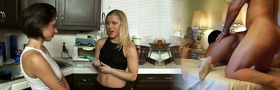 Exotic brunette taunts ash-blonde&039;s cooter with a massager