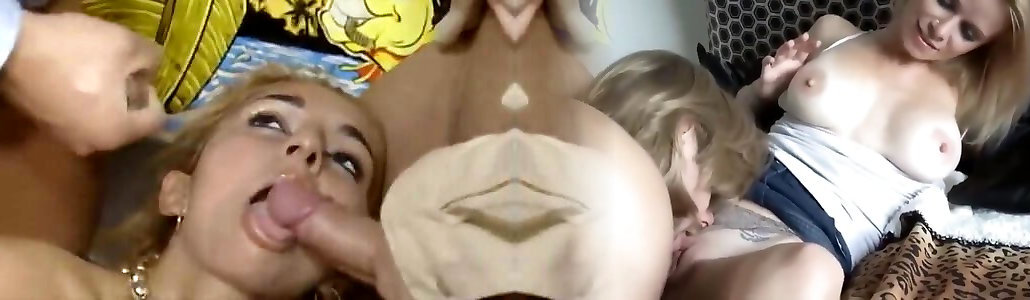 Hot girls swap cum in mouths after riding huge cocks