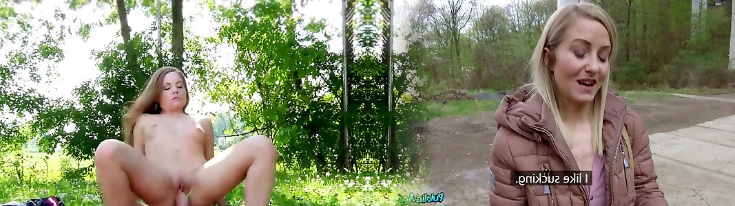 Hot blonde communing and cumming with nature