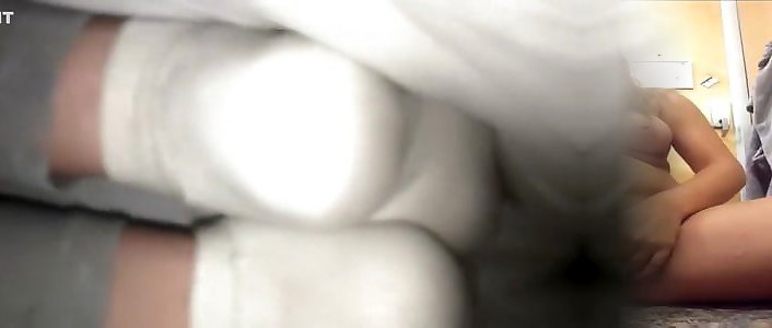 Naughty student in sports socks fucked on the bed by her roommate