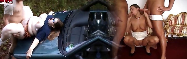 Redhead-BBW-Grandma Outdoors in a Car by 2 Guys