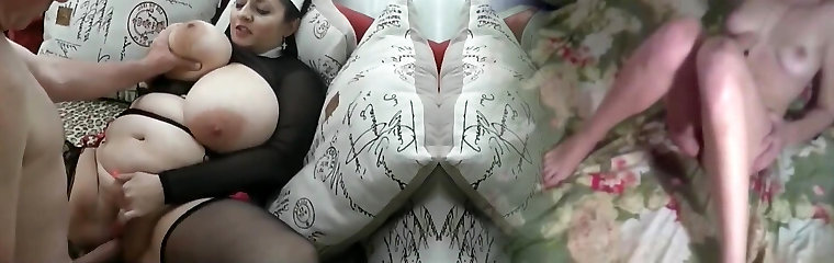 Banging chesty old grandma from both ends