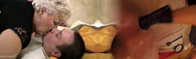 Chubby housewife, Melany likes lying on the bed, while a horny boy is licking her raw pussy