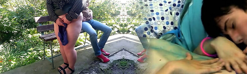 Gorgeous ass fat masturbating MILF in leather miniskirt outdoors