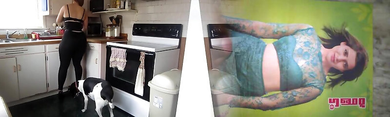 Latex-Fetish-BBW with Gigantic Boobs - In Kitchen