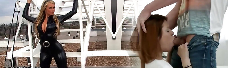 Kinky superwoman in sexy latex stuff and her roof solo show