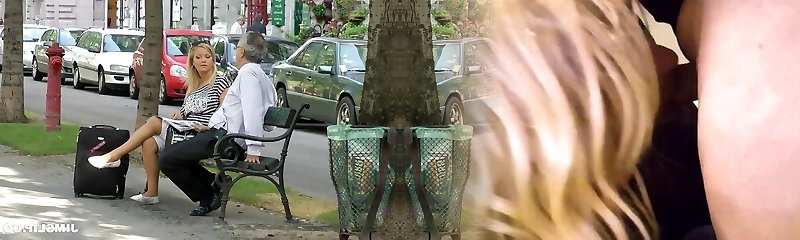 Curvy blond flight attendant gets pummeled hard by an older dude